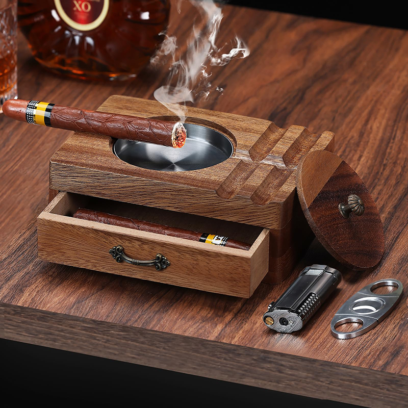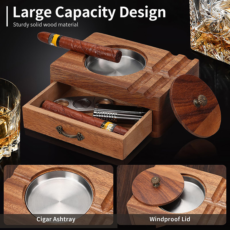 1. Large-capacity cigar accessories drawer. This ashtray has a built-in accessory drawer to store cigar lighters, scissors, hole punches, and other cigar accessories. The accessory drawer is large enough to hold up to two to three cigars.